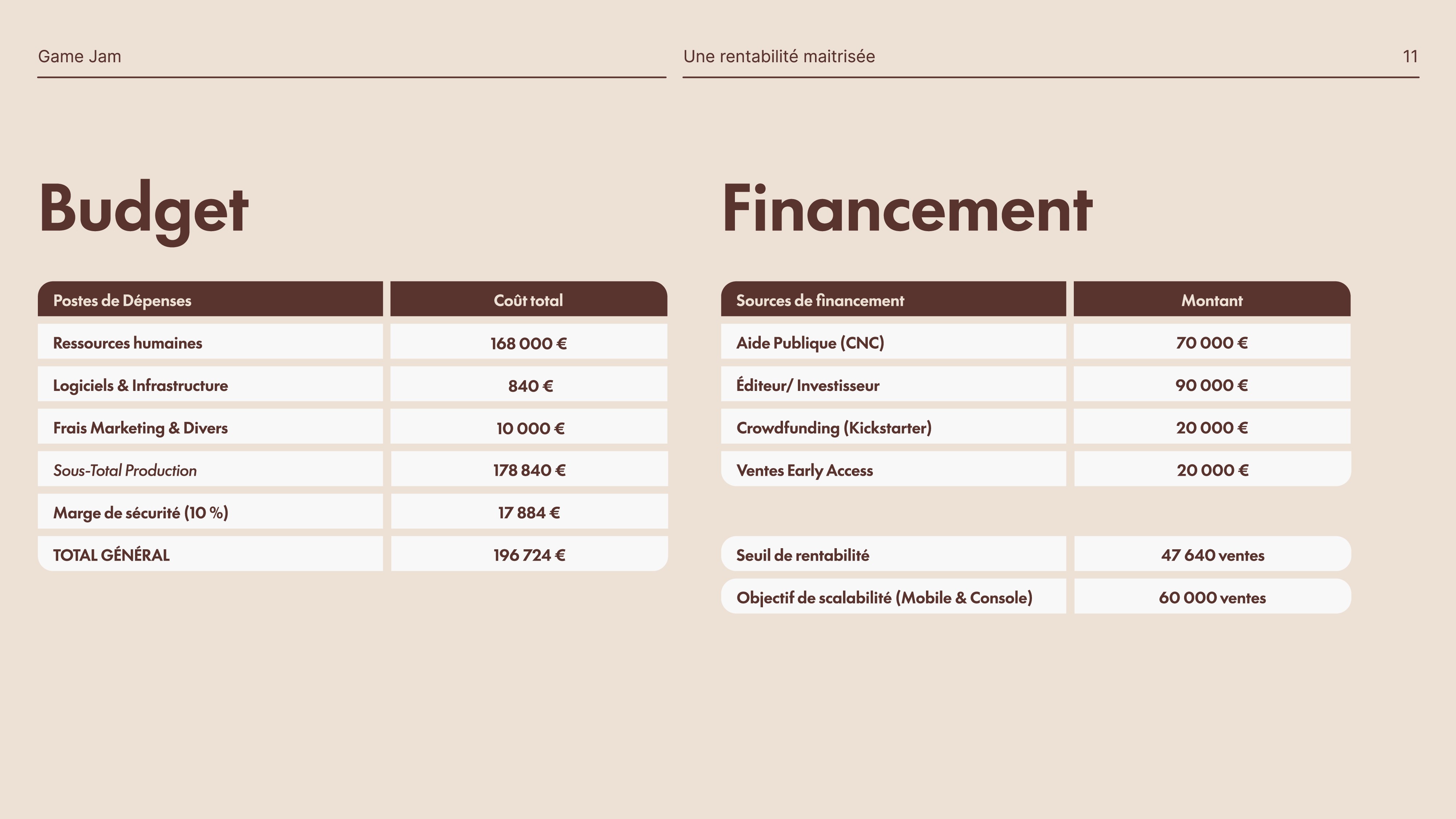 Comment vendre un jeu de réflexion complexe à un public saturé ? Le défi était de définir un positionnement unique pour Ga-31. | Ciblage : Identifier une audience précise (les "Thinker Gamers" sur Steam Deck) pour éviter la confrontation directe avec les blockbusters d'action. | Valorisation : Transformer les contraintes techniques (Graphismes 2D) en argument de vente Premium ("Hand-Drawn Aesthetic"). | Rentabilité : Établir un budget de production réaliste (196k€) et prouver le ROI potentiel à un jury d'investisseurs.